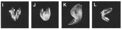 Classes of Terminal Phenotypes: Mutant embryos vary widely in terminal phenotype. Examples of embryos removed from immature seeds and observed under a dissecting microscope are shown here in black and white and in color . We have devised a classification system for terminal phenotypes based on a series of standardized and somewhat idealized morphological classes in order to facilitate the large-scale analysis of embryos for the SeedGenes Project. We recognize that some embryos are difficult to place into a single class based on observations with a dissecting microscope and that different classes may overlap to some extent. We have nevertheless found this system to be quite useful in keeping track of large numbers of mutant phenotypes. The classes are defined below and illustrated here.