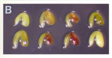 Characterizing Mutant Seeds: Mutant seeds at the time of analysis can differ in size, color, viability, extent of desiccation, embryo morphology, nature of endosperm development, and level of seed coat pigmentation. Terminal phenotypes observed just before seed desiccation can differ significantly from initial phenotypes found early in development. Some defects are quite obvious and readily characterized when mutant embryos are examined under a dissecting microscope. Other types of abnormalities require visualization of cleared seeds with Nomarski optics or detailed examination of sectioned material. All mutant seeds regardless of their underlying cellular defect will eventually turn brown as the silique matures. Seeds arrested early in development generally turn brown before seeds arrested later in development. The timing of this transition, however, is quite variable and dependent on environmental conditions. Two mutant seeds containing arrested globular embryos with identical cellular defects may therefore appear different if one has already begun to desiccate and turn brown while the other is still inflated and white. Seed size and embryo morphology prior to desiccation are therefore more reliable indicators of differences in underlying cellular defects than variations in seed coat pigmentation.